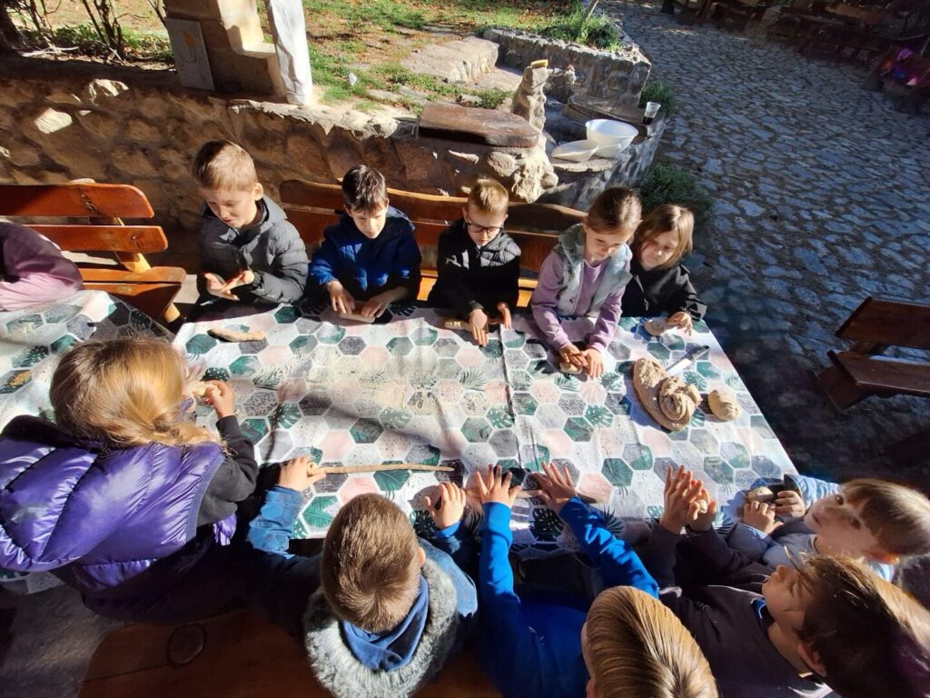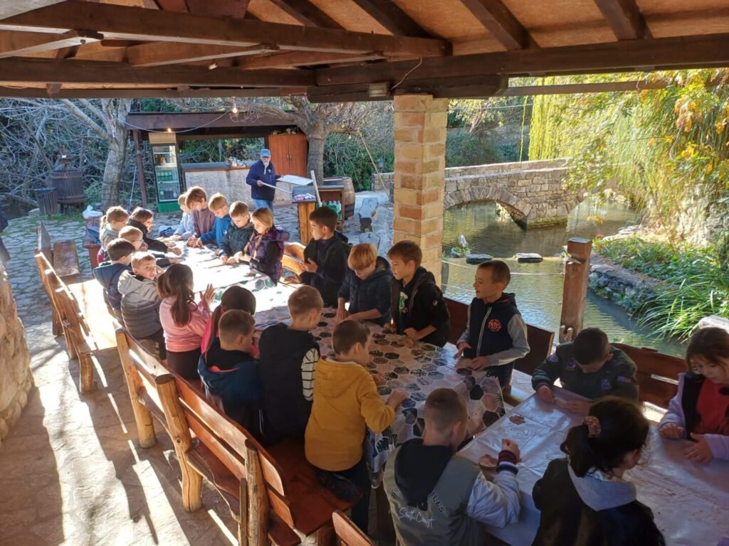 Uz Dane kruha i zahvalnosti za plodove zemlje, naši prvaši posjetili su Antoničin mlin u Žrnovnici. Učenici su sudjelovali u cjelovitom programu, a koji je započeo pokretanjem mlina i mljevenjem pšenice u brašno. Puni oduševljenja pratili su demonstraciju rada, a potom se i sami okušali u pravljenju kruha-miješanje tijesta, oblikovanje peciva i kruščića te pečenje. Na kraju su i sami uživali u plodovima svoga rada i degustirali ukusne krušćiće. Priče iz crne kužine poučile su ih pričama o mlinu, mlinarskoj i mitološkoj povijesti Žrnovnice.