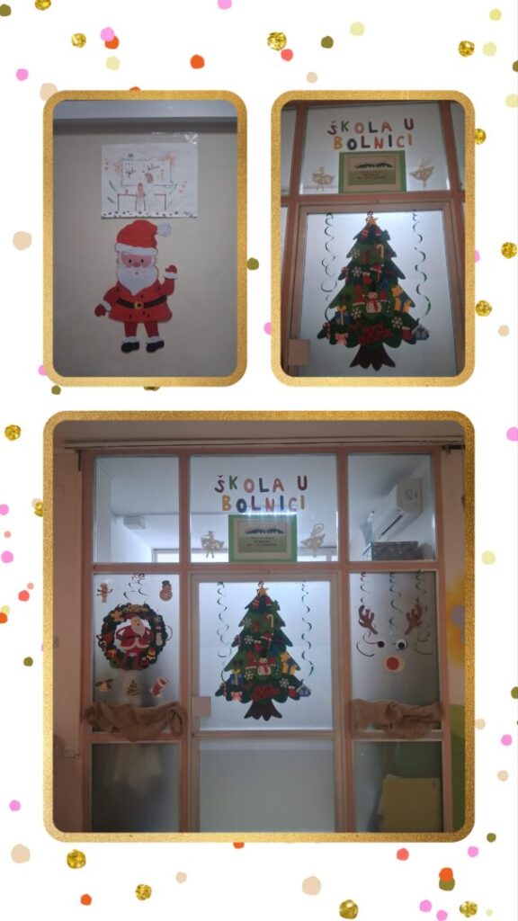 U školskoj učionici u bolnici zavladao je božićni duh čim su djeca počela kititi prostor. Učionica je postala čarobno, toplo, veselo mjesto u kojem se zaboravlja na brige. Uz smijeh, boje i čestitke, djeca i učitelji zajedno stvaraju blagdansku čaroliju koja donosi nadu i radost svima.