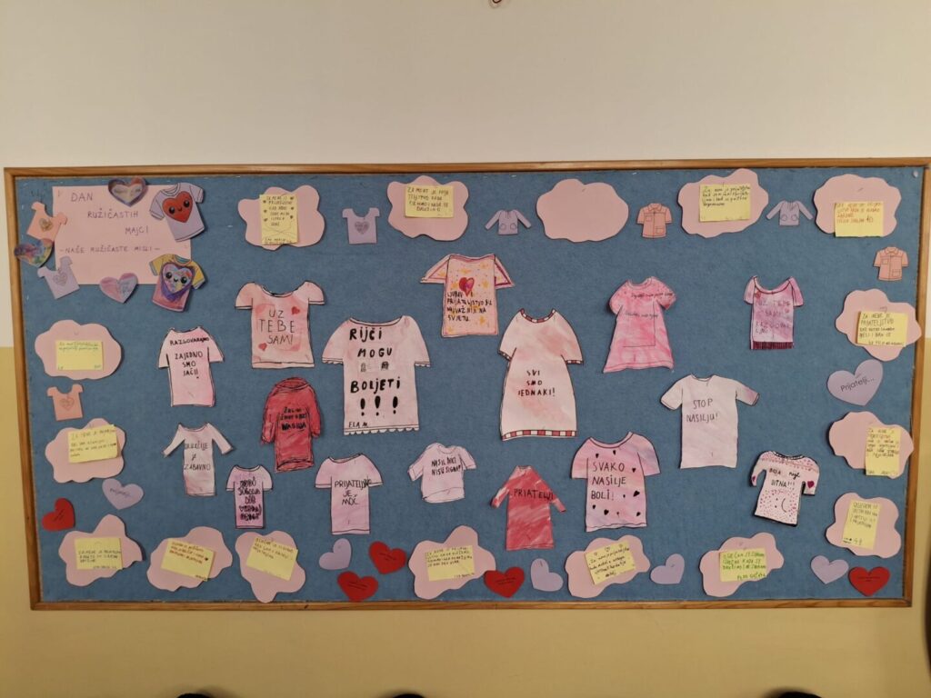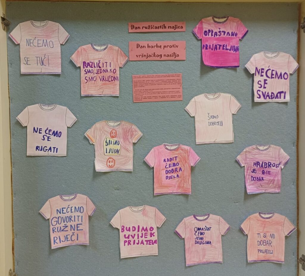 25.2.2026. je prigodno obilježen Dan ružičastih majci u školi. Povodom dana borbe protiv vršnjačkog nasilja, učiteljice RN su organizirale tematske radionice o empatiji , solidarnosti i prijateljstvu . Učenici od 1.do 4. razreda su dan i školu obojali pozitivnim ružičastim mislima i željama o poštivanju, uvažavanju različitosti i ljubavi prema drugima.