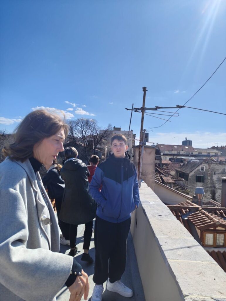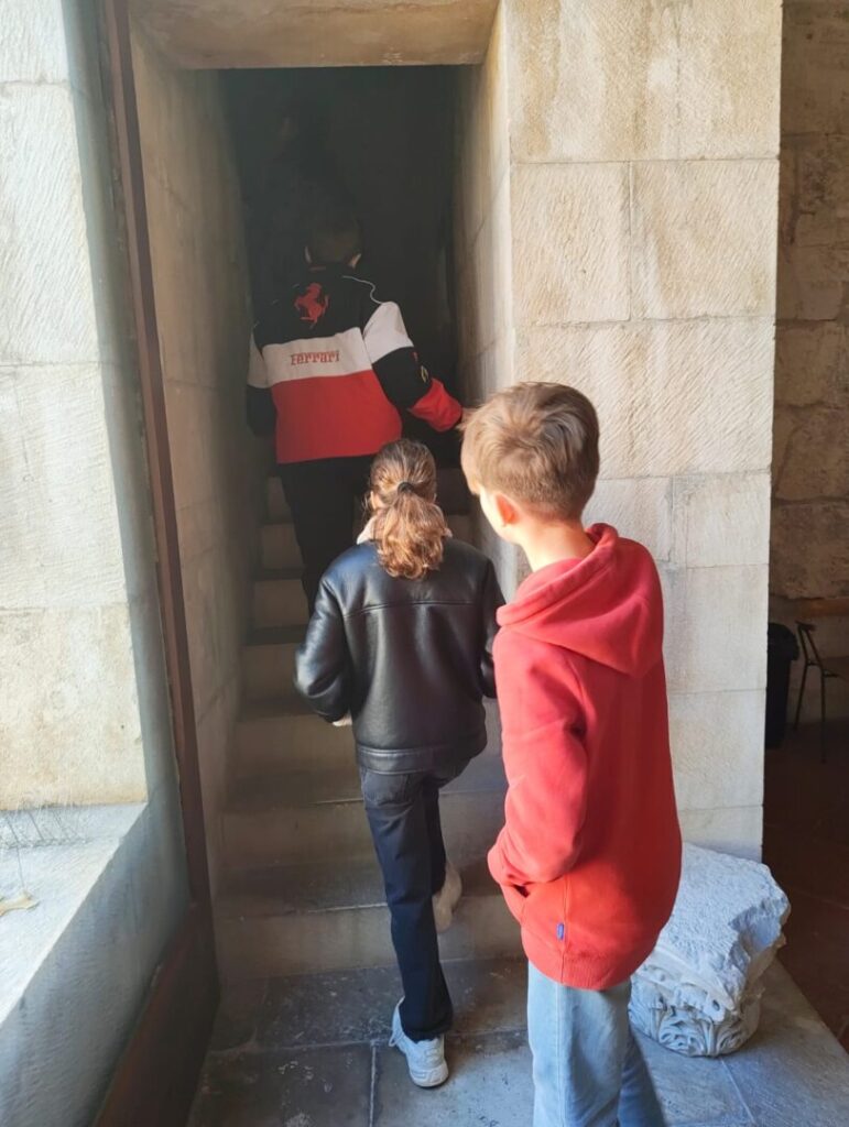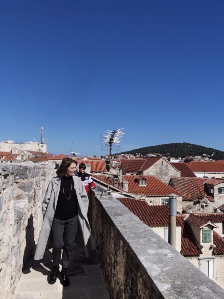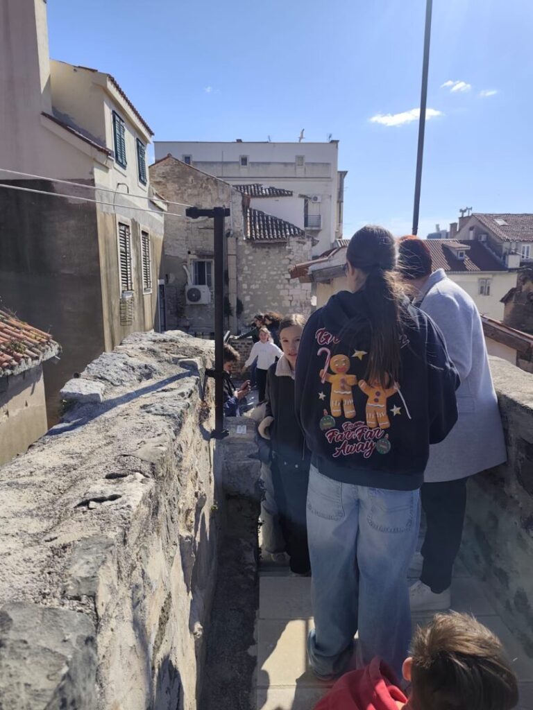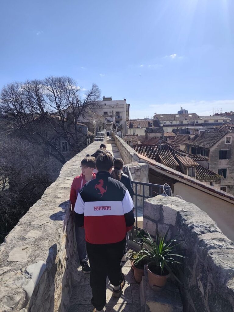 Vrhunac radionice bila je šetnja sjevernim zidom, samim rubom Palače. S te visine pruža se nevjerojatan pogled na guste krovove starog grada, ponosni zvonik katedrale sv. Duje na jugu, monumentalni kip Grgura Ninskog koji čuva Zlatna vrata na sjeveru te brdo Marjan na zapadu.