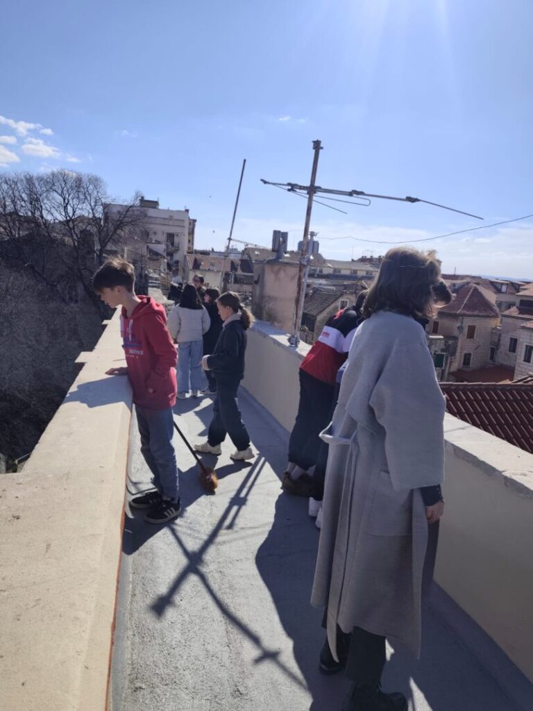 U petak, 20.3., naši su učenici, kojima su u pratnji bili Slavica Sumić i Lea Herceg, zamijenili školske klupe povijesnim zidinama. U sklopu projekta STeam sudjelovali su na edukativnoj radionici pod nazivom “Kako se Dioklecijanova palača mijenjala kroz sva minula stoljeća?” koja se održala na autentičnoj lokaciji – u samoj sjeverozapadnoj kuli Palače.