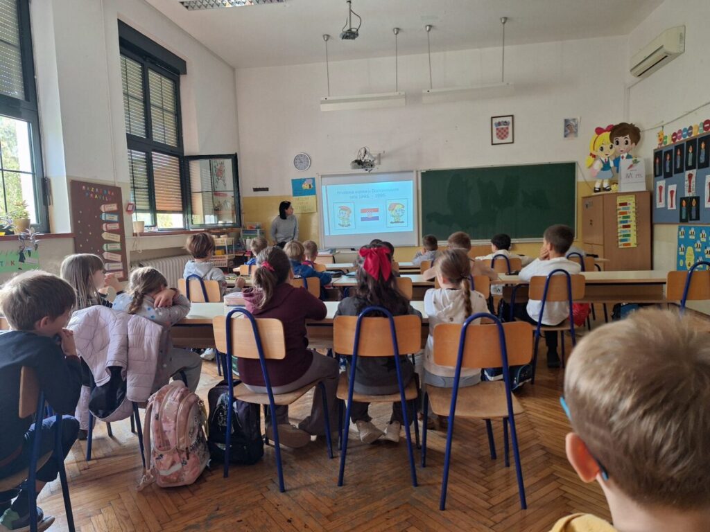 Dana 10.11.2025. učenicima 1.a i 1.b u posjet su došle teta Bruna i teta Marija iz Muzeja Domovinskog rata.