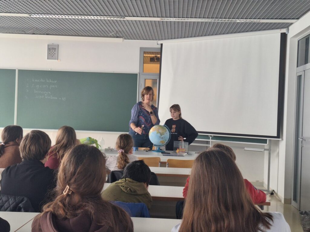 Naše učenice i učenici petih, šestih i sedmih razreda posjetili su Prirodoslovno‑matematički fakultet u Splitu u sklopu školskog STeam projekta. Izvanredna profesorica Jadranka Šepić s Odjela za fiziku održala je zanimljivo i učenicima vrlo pristupačno predavanje te radionicu na temu klime.