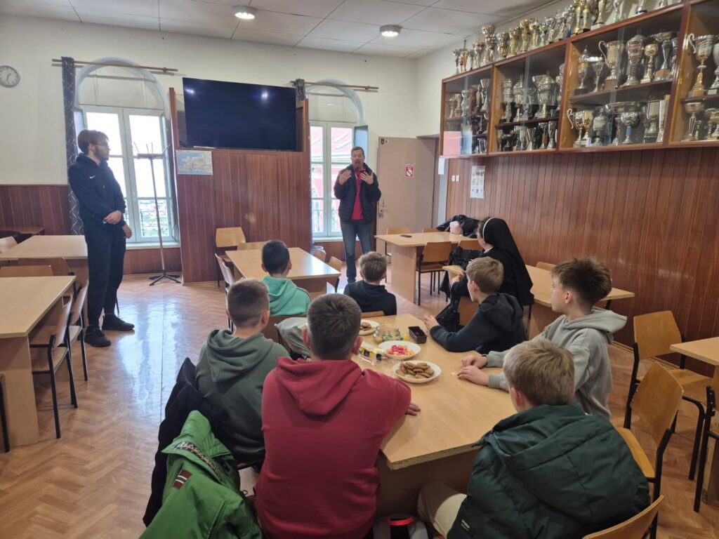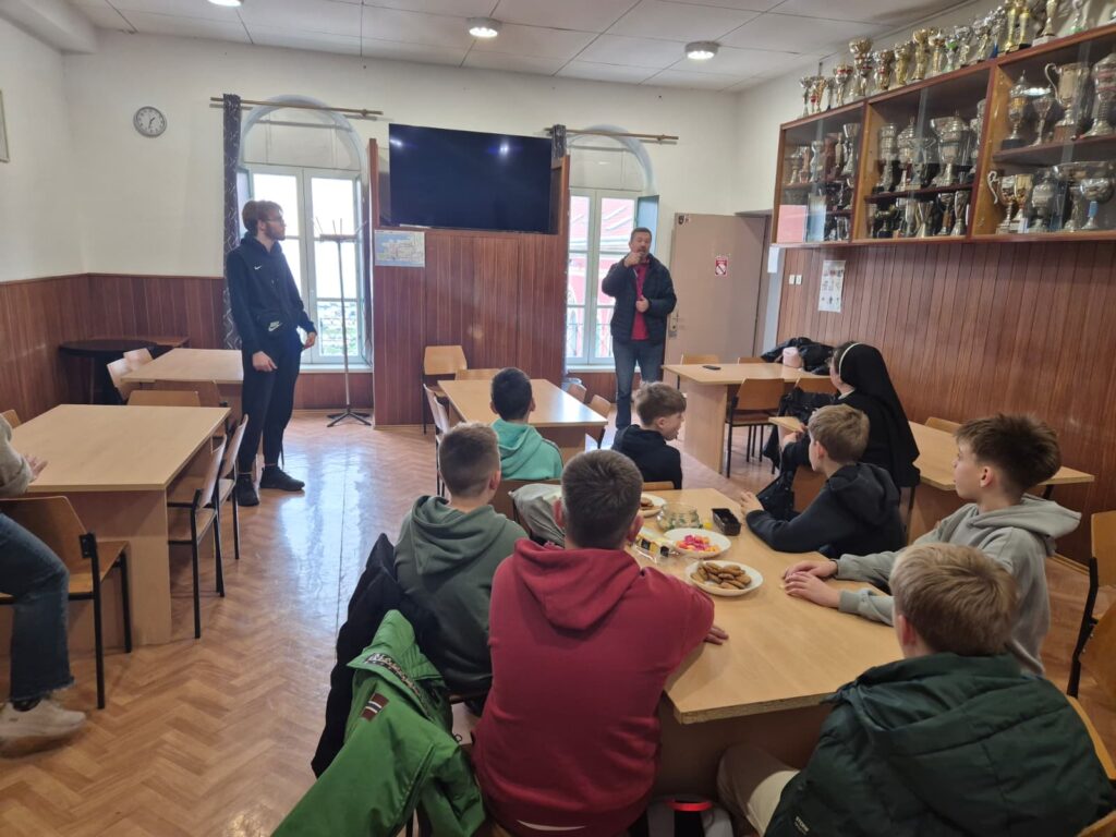 Domaćini učenicima bili su Ivan Pervan, predsjednik udruge, te njegov sin Bruno Pervan, student forenzike i uspješan sportaš u streljaštvu. Budući da su članovi grupe „Srce za druge“ uglavnom mladi sportaši, posebno ih je zanimalo kako gluhe osobe sudjeluju u sportu te s kojim se specifičnostima susreću. Razgovor je potaknuo mnogobrojna pitanja, a učenici su pokazali veliko zanimanje i poštovanje prema postignućima gluhih sportaša.