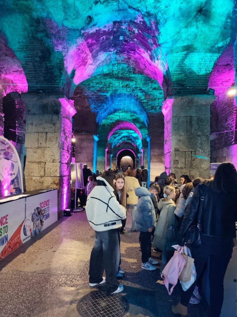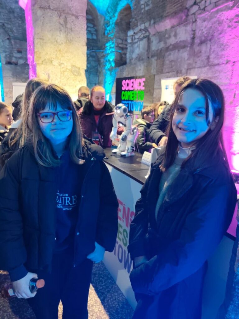 U sklopu STEAM projekta i izvannastavnih aktivnosti, učenici petih, šestih i sedmih razreda posjetili su interaktivnu javnu izložbu u okviru europskog projekta „Science Comes to Town“ održanu u Dioklecijanovim podrumima, uz pratnju učitelja Lee Herceg i Borisa Aračića.