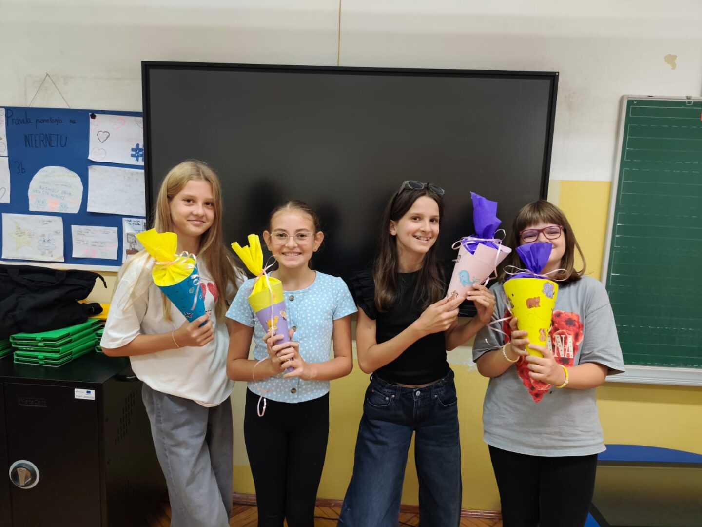 Marljivim radom i maštovitim dekoriranjem, naše su učenice s njihovom profesoricom Leom simbolično zaželjele svima sretan i uspješan početak nove školske godine!